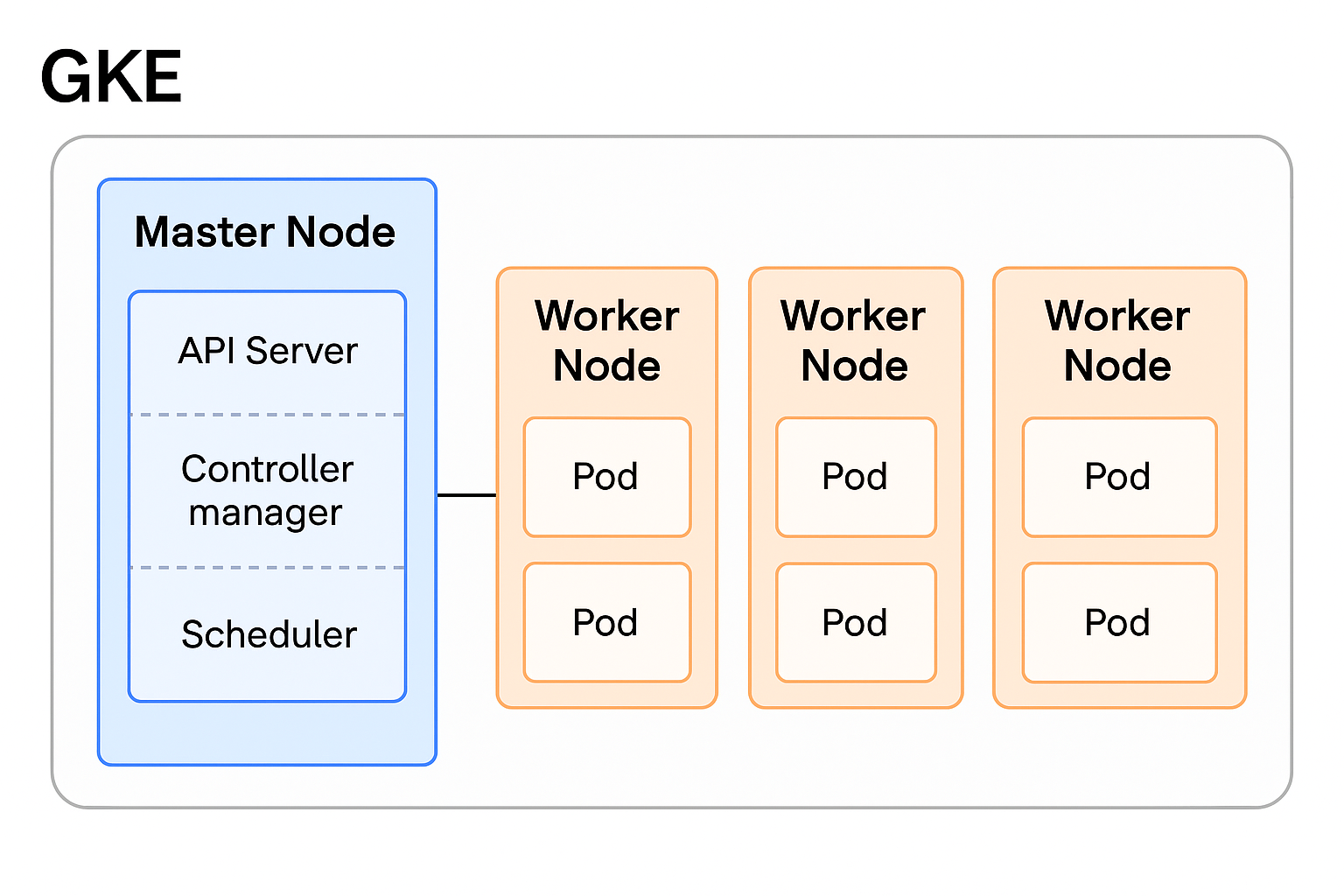 클러스터 생성부터 노드풀 관리, Auto Scaling, 모니터링, 보안까지 Google이 관리 → 사용자는 워크로드에 집중